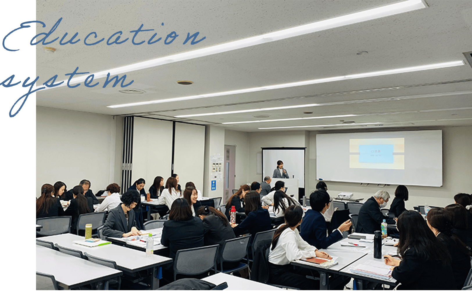 新卒で入職されるかたはもちろん、経験の浅いかた、そして経験者のかたにも、ご自身の目標やキャリア設計に基づいたスキルを身につけていただくため、多くの学びの機会を提供しています。各自に合った勉強ができるよう、規定のプログラムだけでなく、興味があるセミナーなどへの参加もバックアップしているのが特徴です。
